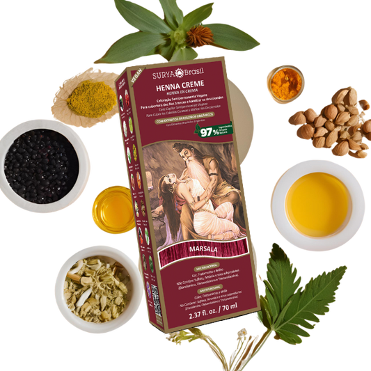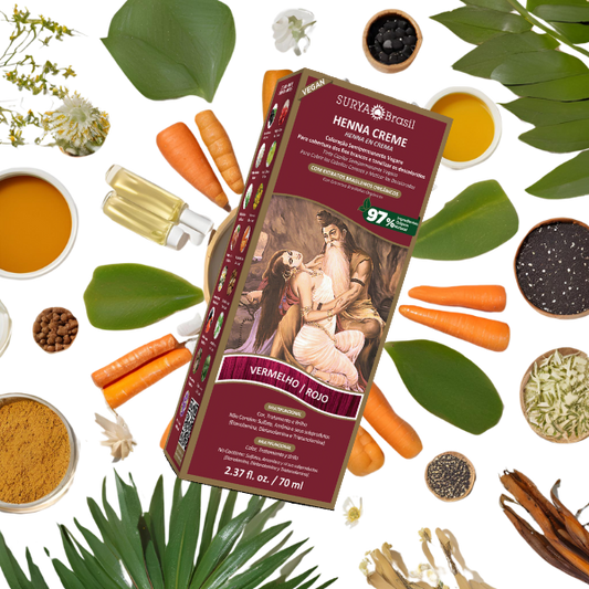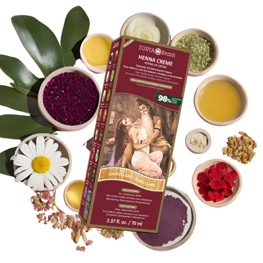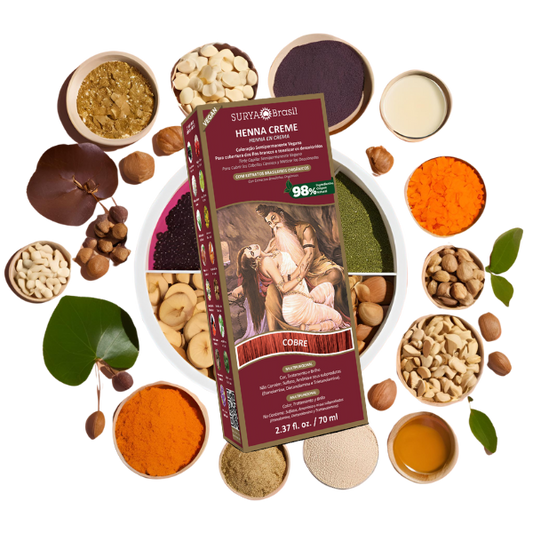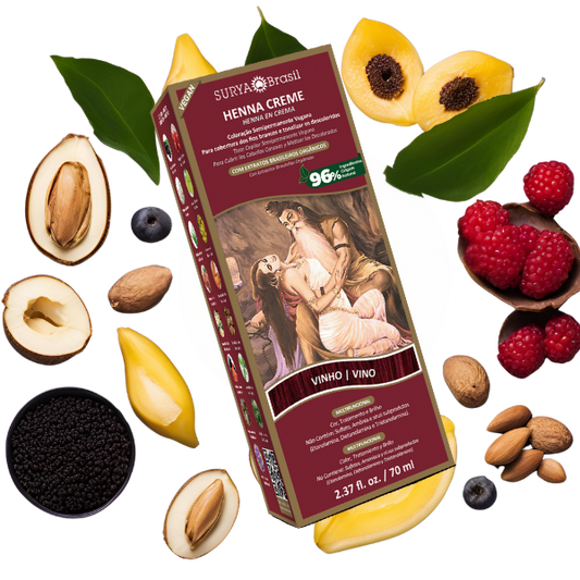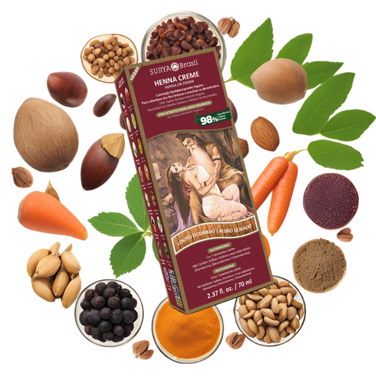 Henna Creme Surya Brasil, a coloração mais natural e com melhor performance, unindo os melhores ingredientes da Índia e da floresta Amazônica. Formulada com um blend exclusivo, composto por 15 Extratos Vegetais e Orgânicos que tratam e hidra-tam os fios, deixando-os mais macios e sedosos. Dermatologicamente testado. Para prolongar a durabilidade da cor, utilize a linha de tratamento Color Fixation Surya Brasil.
